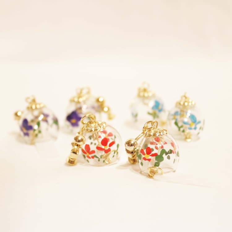 Earrings and earrings are painted from the inside, just like wind chimes. Some of them make a little noise, so they are especially compatible with yukata and kimono, and are recommended.